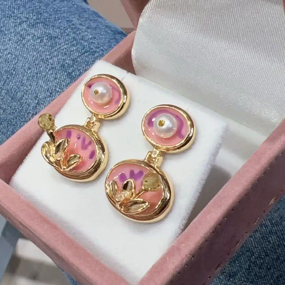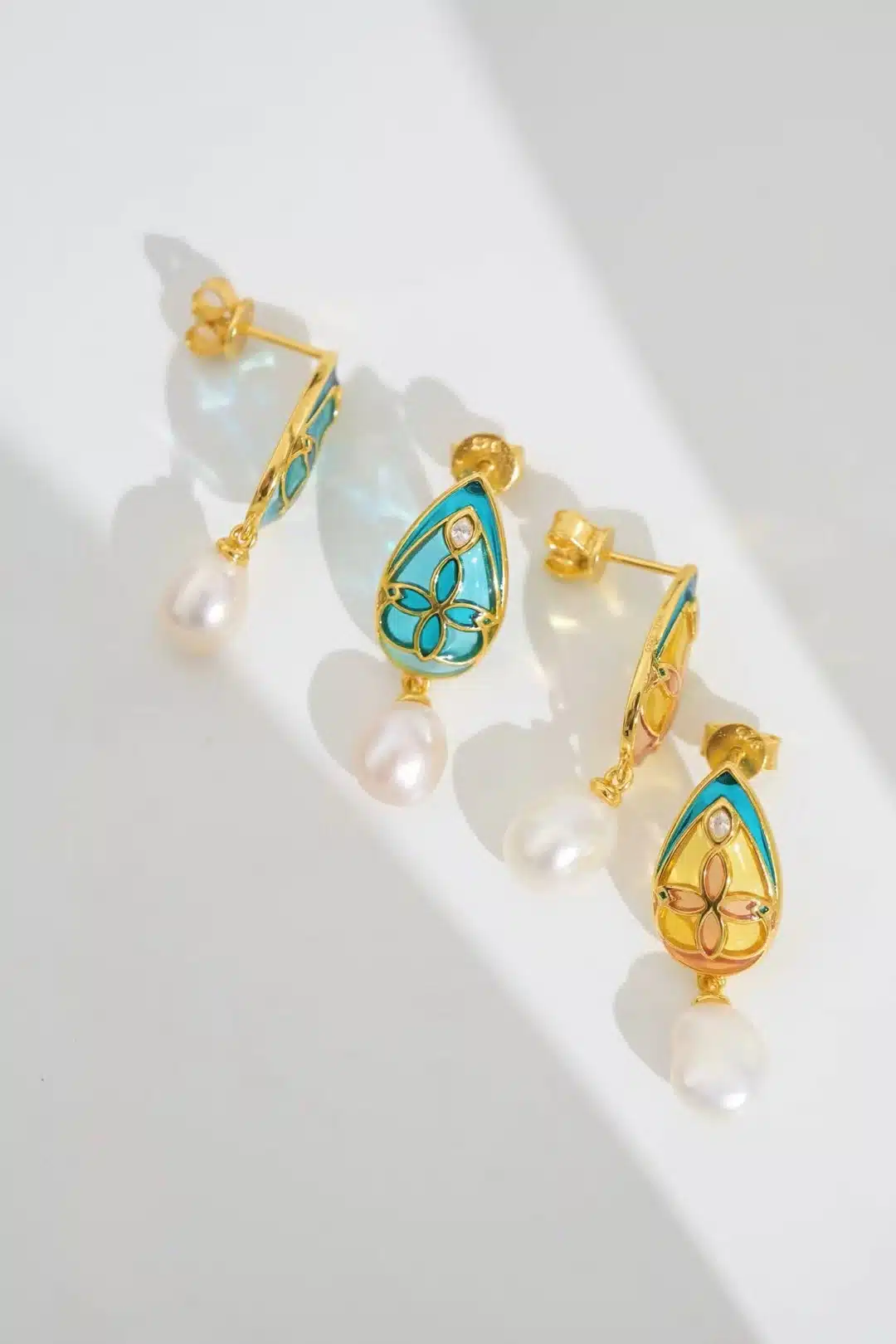 Discover a stunning collection of classic and contemporary earrings, perfect for every occasion. Choose from timeless diamond studs, elegant pearls, vibrant enamel hoops, and colorful gemstone earrings. Available in sleek silver and luxurious 18k gold etc., our selection offers the ideal accessory to elevate your style.